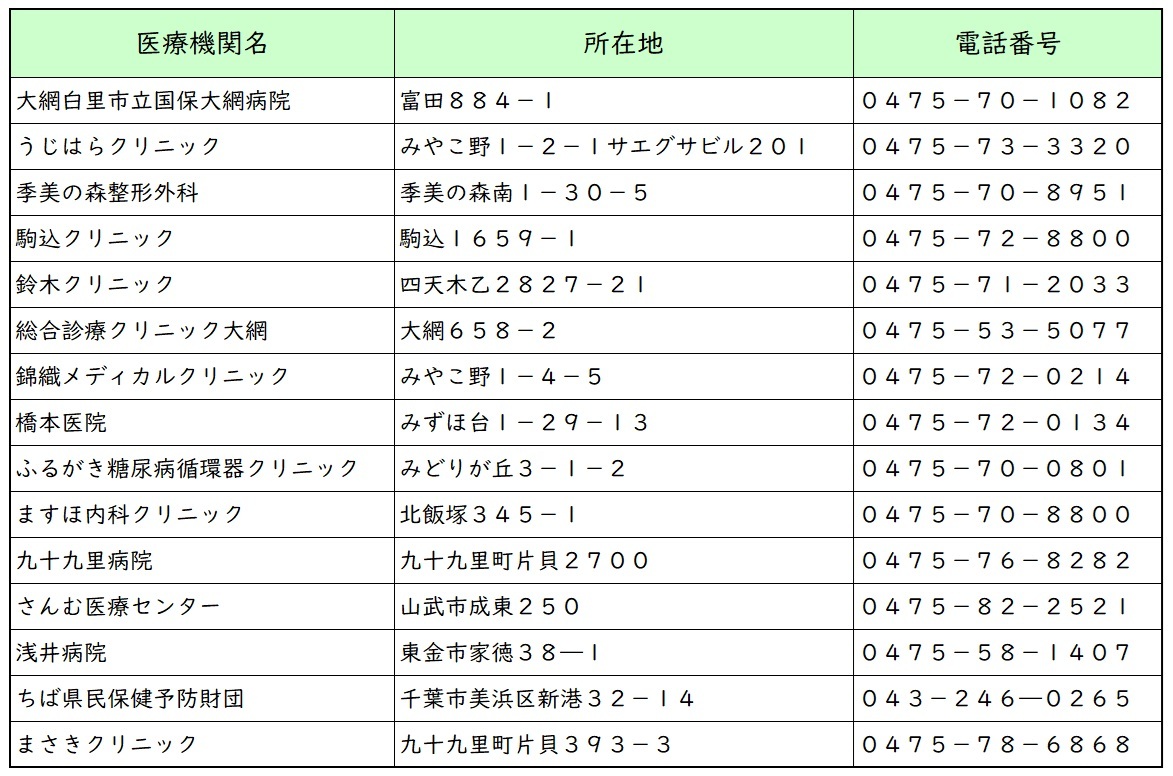 個別健診実施医療機関一覧