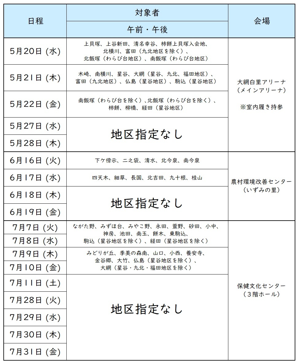 地区指定のない日は、お住いの地区に関わらずどなたでも受診できます。