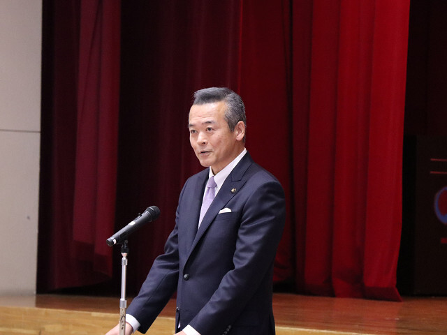 あいさつを述べる市長