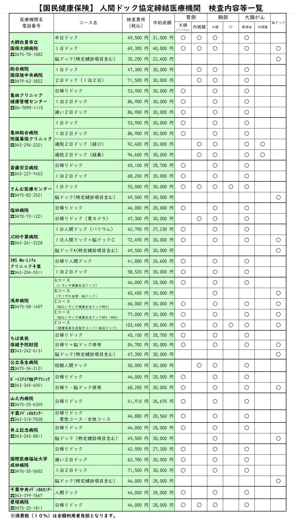 大網白里市と契約している医療機関とコース一覧